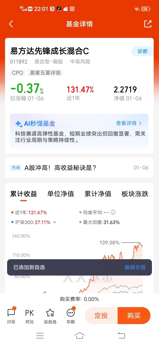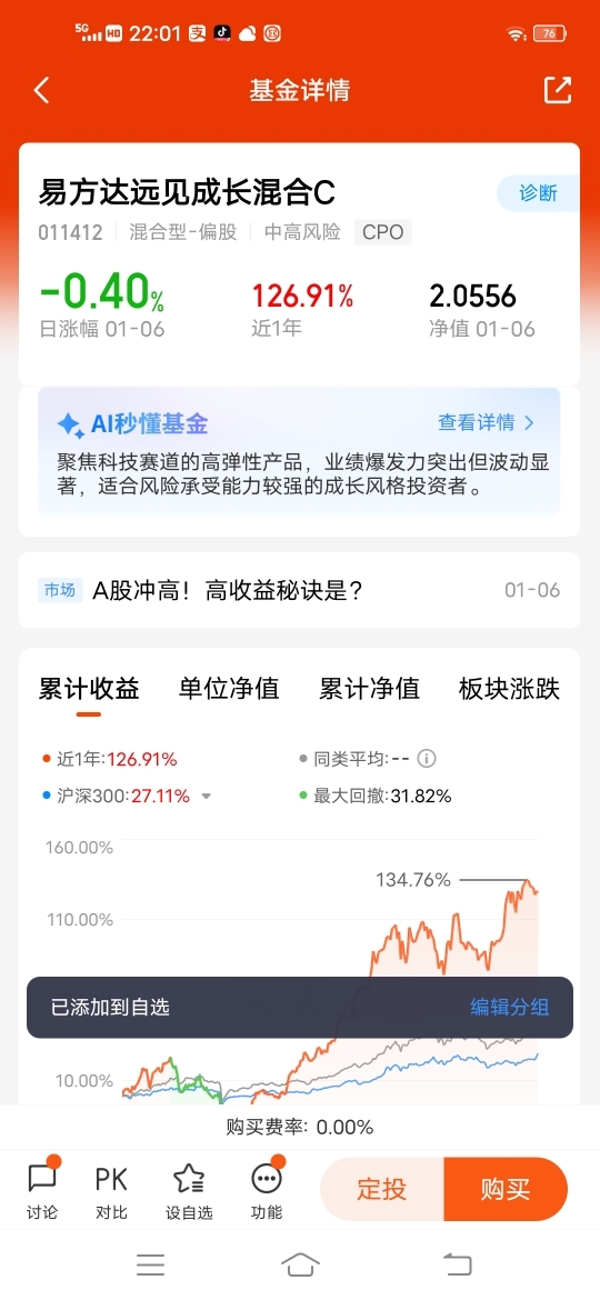 基民小虎是易方达基金的铁粉,一直定投持有易方达黄金ETF联接C、易方达信创ETF联接C、易方达沪深300指数增强C、易方达上证科创板芯片指数发起式C、易方达增强回报债券B、易方达纳斯达克100ETF联接(QDII-LOF)C(人民币)等10多个基金产品,收益和体验都非常好!将会继续定投、买入易方达基金产品,并长期坚定持有!$易方达瑞享混合E$ $易方达先锋成长混合C$ $易方达远见成长混合C$ @易方达基金