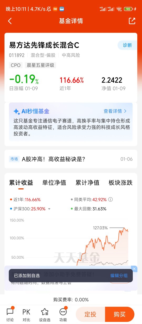 #热点快闪:CPO高位博弈,你的下一步操作是?# 我是坚定持有派,$易方达先锋成长混合C$
