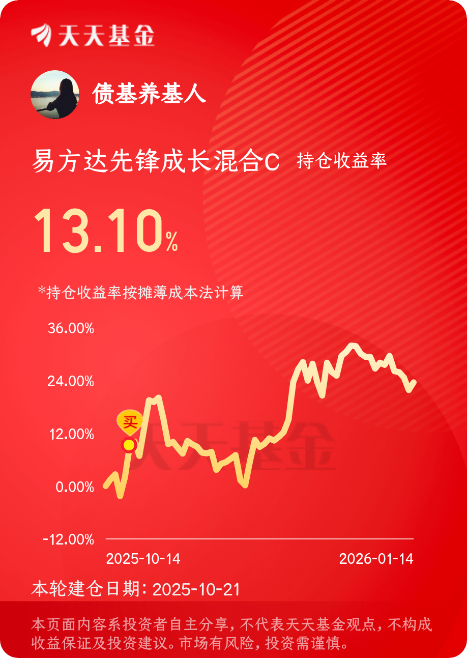 #晒收益# $易方达先锋成长混合C$主投cpo板块, 昨天就上涨1.4%,比同类竞品要多一些,今天关联板块上涨将近3个点,晚上又可以吃肉了!