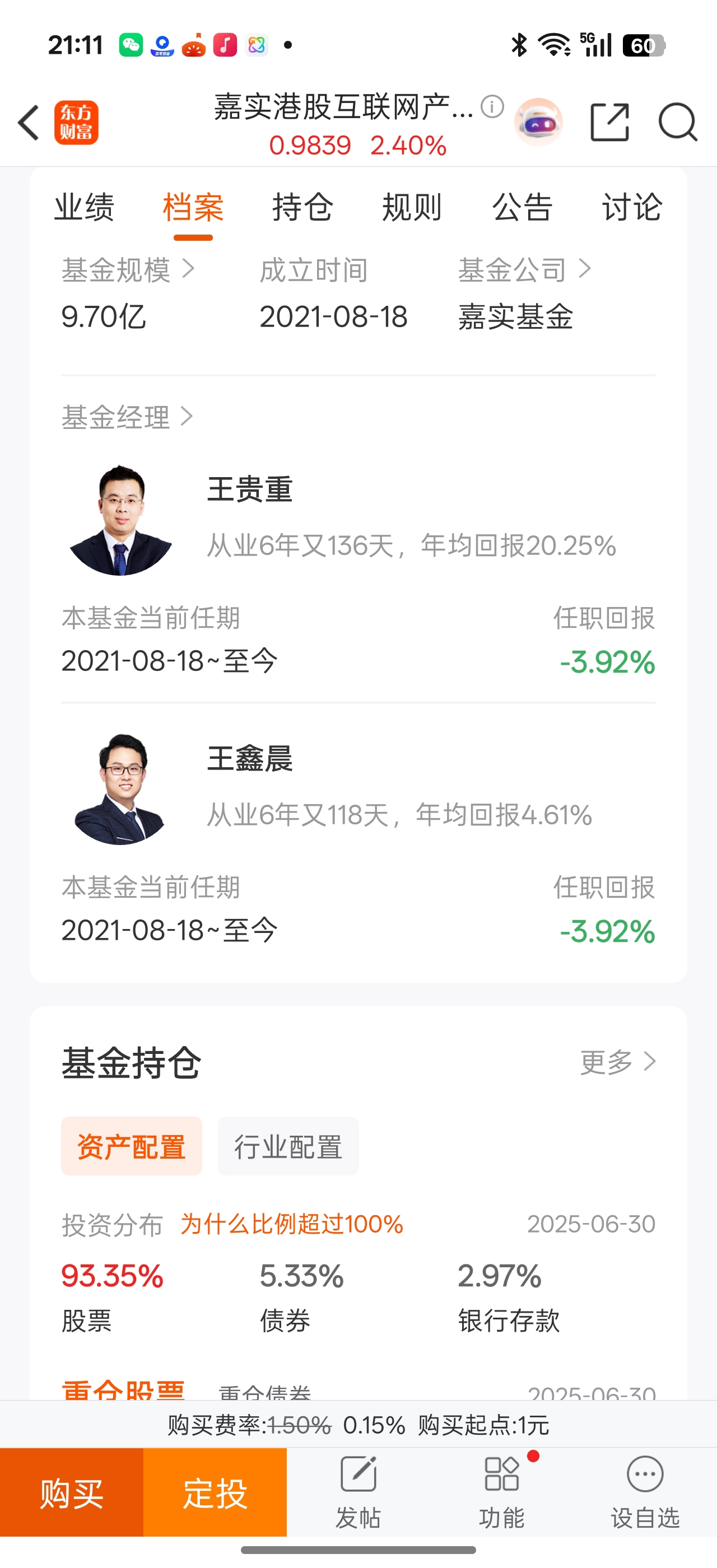 $嘉实港股互联网产业核心资产A(OTCFUND|011924)$ 诸位嘉实互联网港股基金又一次让我们失望了,这帮基金经理他们没有重仓港股股票肯定有一部分重仓了国内,记住这两位基金经理的名字,等风头过去之后就果断抛出,不要再购买他们的基金,大家都卖掉,基金经理亏损的我们的钱自己乐哈哈花着我们的管理费