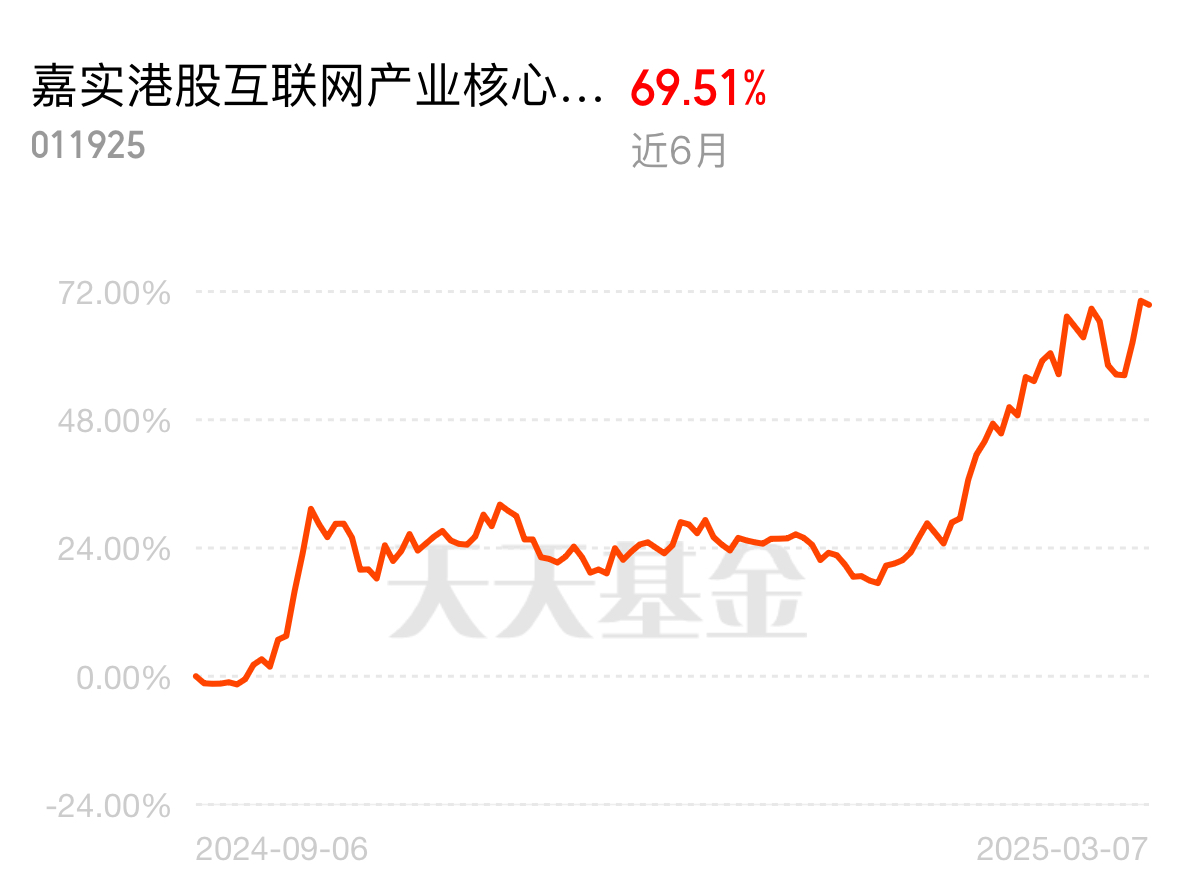 而我所青睐的$嘉实港股互联网产业核心资产C$ 基金,更是精准布局了小米、美团、阿里巴巴等互联网巨头,其眼光之独到,令人赞叹。自入手以来,该基金的表现着实令人欣喜。昨日便以4.78%的涨幅令人眼前一亮,近一月更是取得了20.34%的佳绩,三月内累积涨幅高达36.76%,半年间更是实现了69.51%的惊人增长。