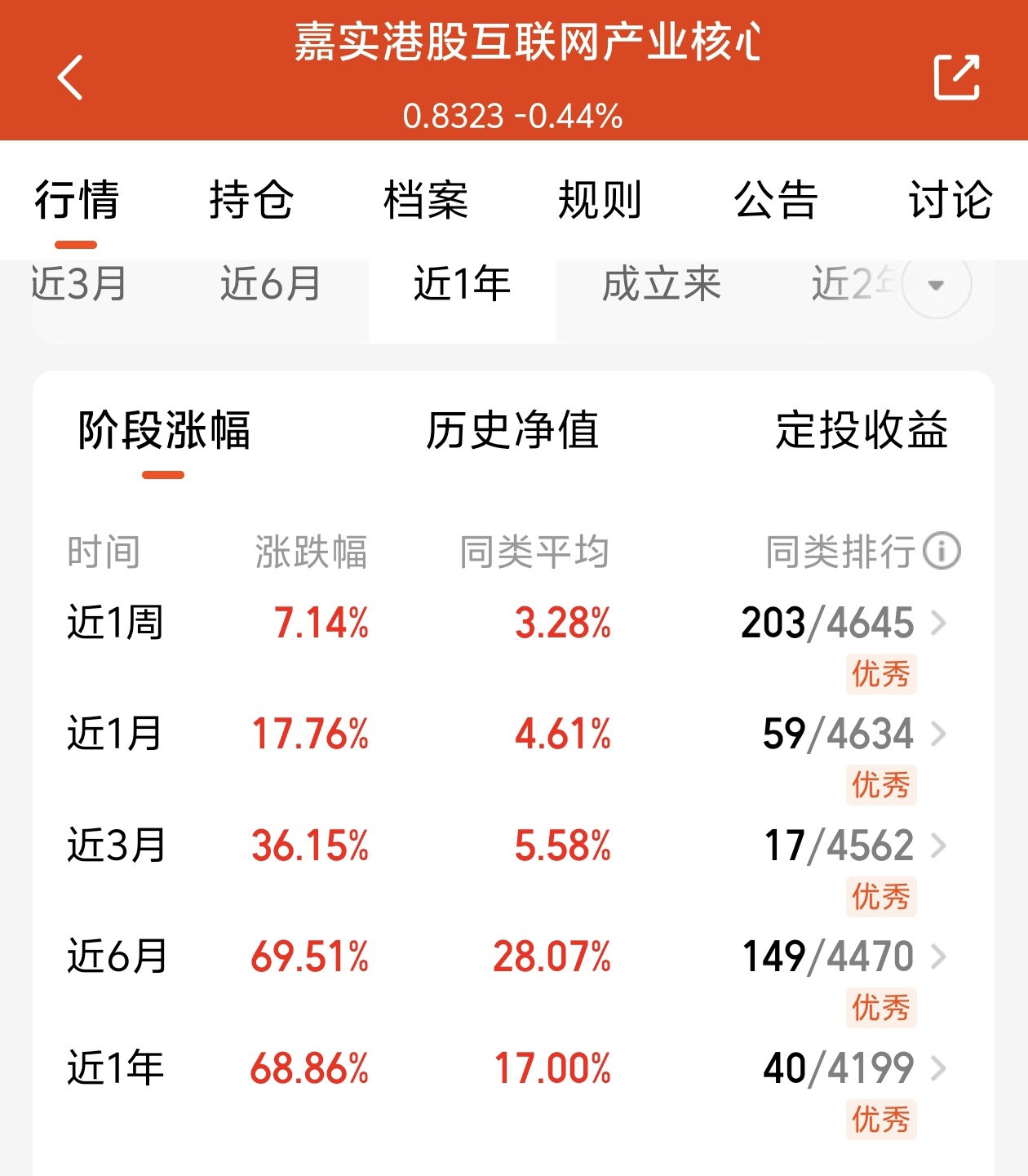 $嘉实港股互联网产业核心资产C$ 该基金近期表现的也是非常的优秀!近一个月的收益率高达17.76%,近六个月的收益率高达69.51%,收益率领先于同类平均,在同类基金排名中也比较领先。投资策略灵活,买入零费率!该基金主要的持仓也是互联网行业的龙头企业,比如阿里巴巴,小米集团,美团,腾讯控股,中芯国际,理想汽车,金山软件等知名企业!从今年开年以来,南下资金大量的涌入港股!南下资金买入前十名的股票,嘉实港股互联网持仓基金覆盖度也比较高。港股也吸引了大量的外资涌入,毕竟外盘都出现了大面积的回调,只有港股和A股也走出了独立上涨行情。从估值来看的话,港股科技相比于A股科技和美股科科技,人处于历史低位,没有到达前期的高点。投资性价比也更加的高。今天我也是低吸布局,期待后续行情收益。