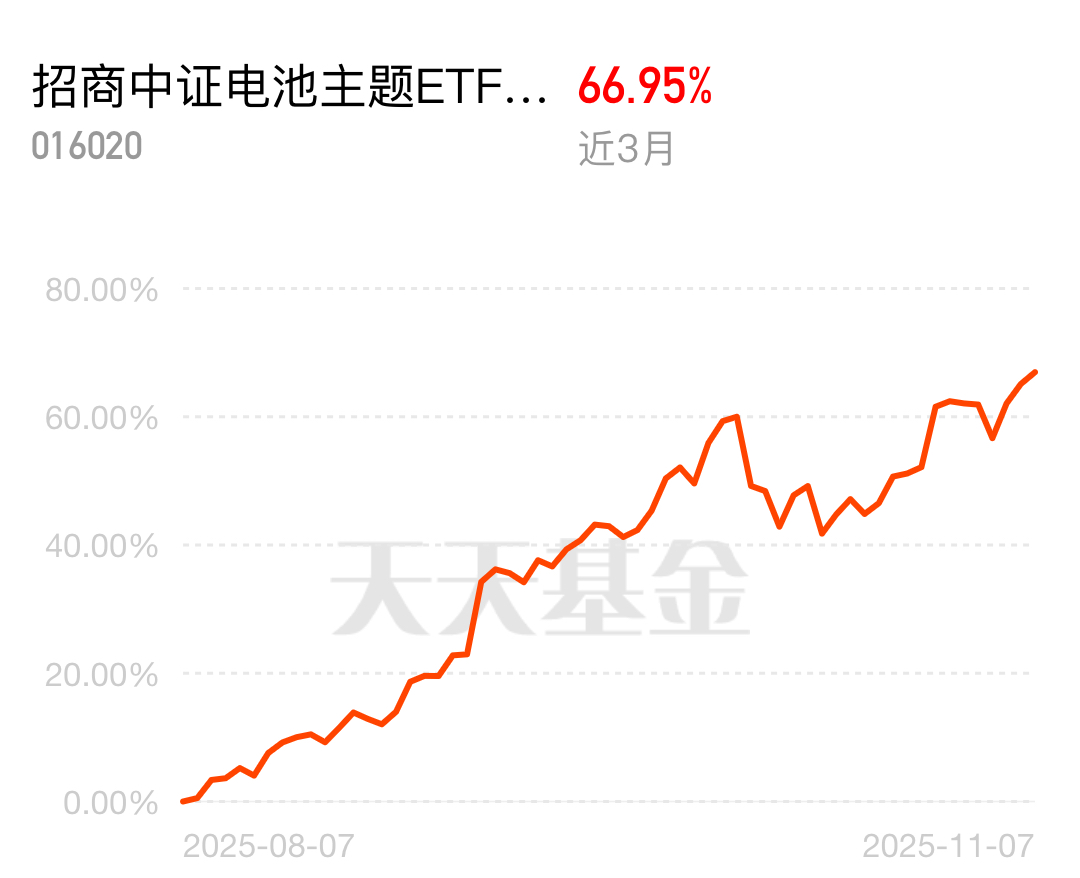 近期锂电板块午后走强成为常态,龙头个股频频领涨,市场情绪持续高涨,今日板块再掀热潮。招商中证电池主题ETF联接C紧跟龙头步伐,近3个月收益66.95%,今日表现亮眼,跟着龙头走,投资更稳妥。$招商中证电池主题ETF联接C$