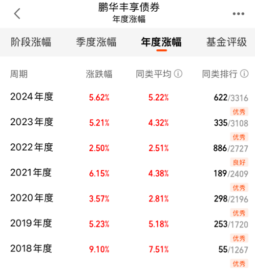 加仓$鹏华丰享债券(OTCFUND|004388)$2000元,丰享最近连续收蛋,多个阶段业绩排名又上来啦,趁今年还没涨太多、债市也在持续回暖,我继续存钱稳健升值!丰享成立8年多以来,年年都是正收益,累计涨了48.89%,被评为了晨星5星债基,目前主投久期1-3年的信用债,也有少量配置利率债,稳稳收益真的香!