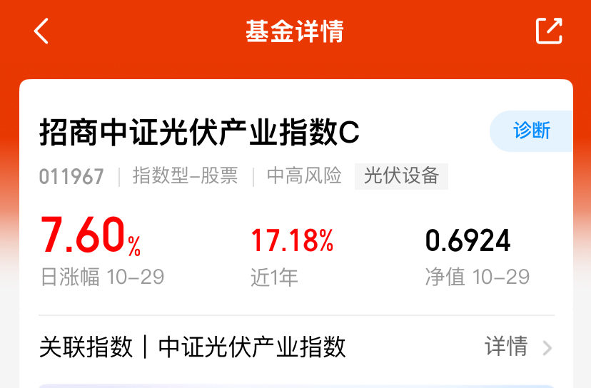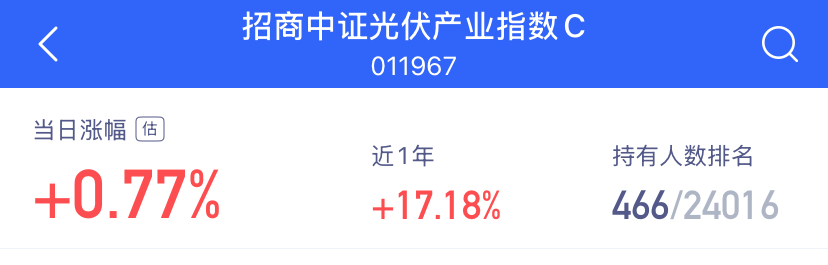 午后,三大指数集体翻绿,整体行情震荡加剧,不过新能源持续走强,其中$招商中证光伏产业指数C(OTCFUND|011967)$昨天收涨,目前盘中估值,目前整体趋势向好,从技术面来看,有企稳反弹之势,底部实现放量突破,后续行情值得期待啦!$广发国证新能源车电池ETF联接C(OTCFUND|013180)$$东财光伏C(OTCFUND|018503)$#美联储再次降息!12月降息与否难料##英伟达市值突破5万亿美元!啥信号?#