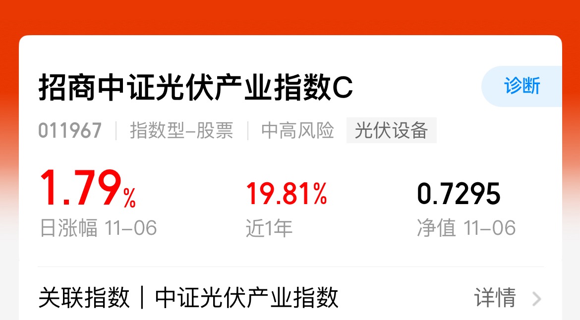 光伏板块继续走强,我看到这一个$招商中证光伏产业指数C$ 昨天单日上涨1.79%今天估值继续上涨1.733%季报显示产业链各环节利润普遍好转,光伏投资逻辑聚集两大主线,不管是长期还是短期,都是值得一个继续看好的板块