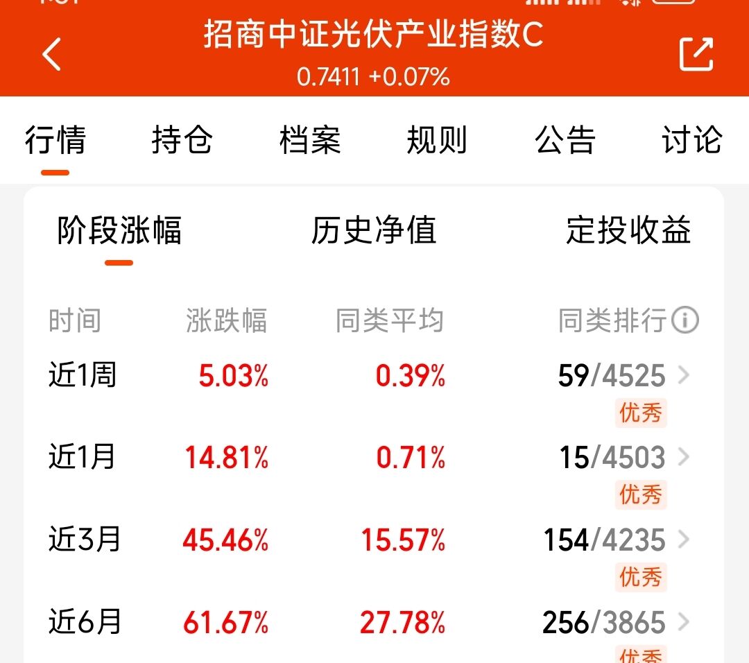 今日 A 股冲高回落,光伏板块也跟着波动,但短期回调改不了长期上涨趋势。国内三季报显示,光伏各环节利润大多好转,主材行业亏损大幅缩窄。$招商中证光伏产业指数C(OTCFUND|011967)$表现超亮眼,短短三个月涨幅达 50.66%,远超同类。当前光伏赛道趋势明确,大概率成未来主线,我已经果断加仓,提前埋伏一波~
