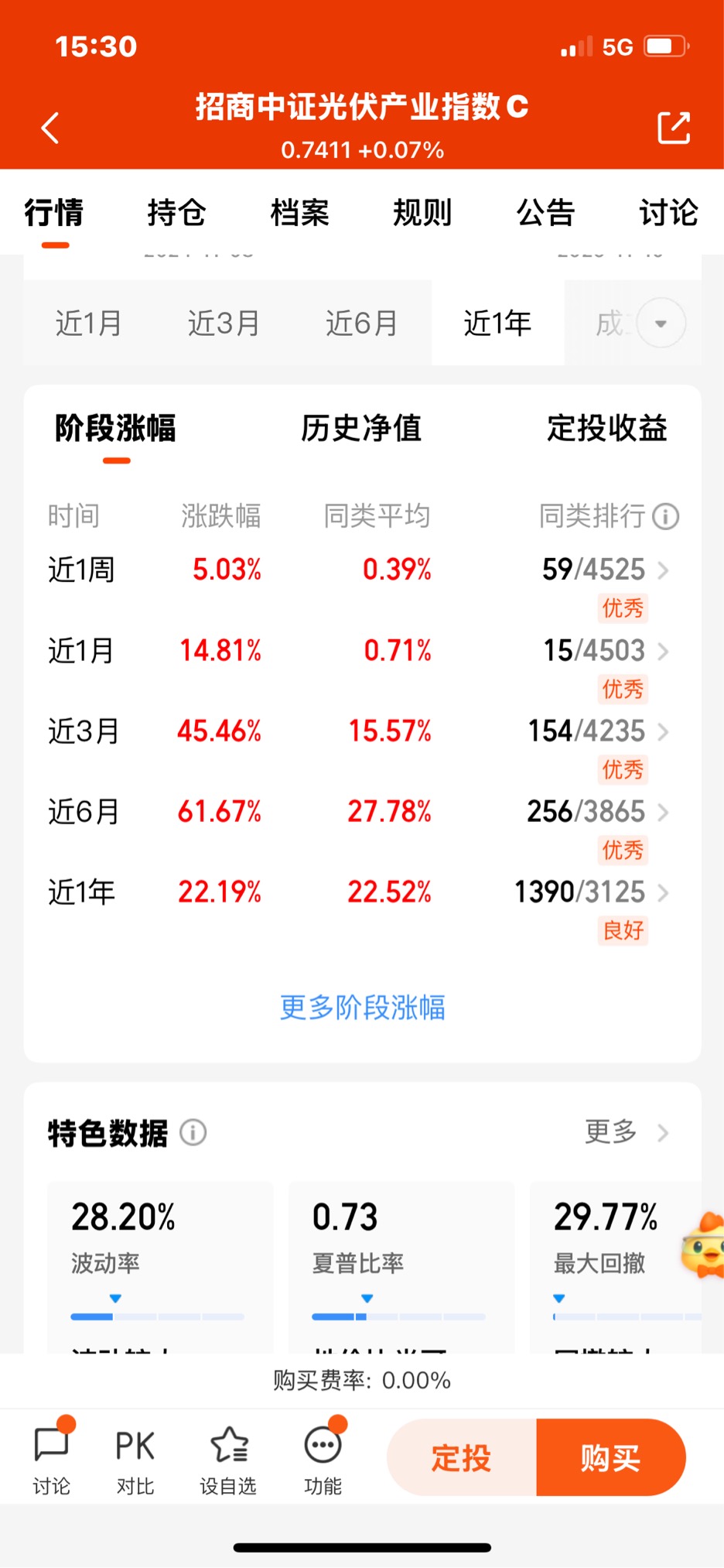 $招商中证光伏产业指数C$ 从趋势来看,最近这段时间光伏走出独立行情,稳稳上涨,我也上车了
