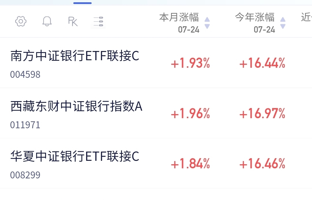 $南方中证银行ETF发起联接C$ $华夏中证银行ETF联接C$ $东财银行A$