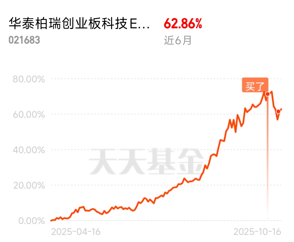 之前还犹豫科技是不是高了,结果$华泰柏瑞创业板科技ETF发起式联接C$ 近6个月62.86%的收益教我做人。现在坚信科技是主线,跌了就买,毫不含糊!