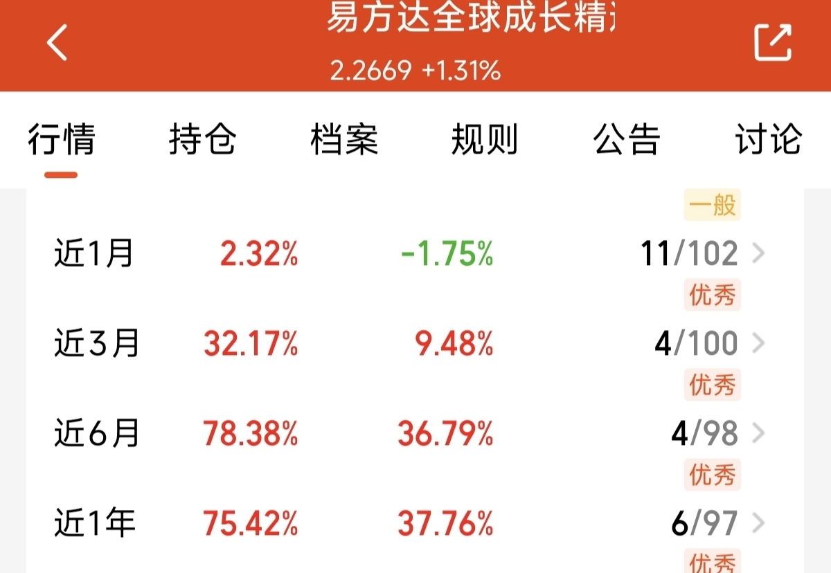 今天三大指数再次出现震荡,银行板块呈现连涨,目前我还是看好科技未来的表现。随着美联储继续打开降息,美股科技直接受益。A股的算力,港股的互联网紧随其后。易方达全球成长精选是主动的科技基金。基金经理通过投资a股,港股,美股多地来把握全球科技成长。而且还可以规避单一市场波动风险。多次躲过单一市场大幅调整的波动。昨天又上涨了1.31%。近一年涨幅75.42%。长期表现做到了涨多跌少。我看好未来的成长表现。