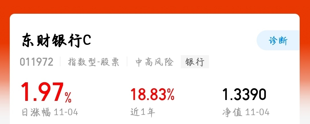 强!$西藏东财中证银行指数C$近一年涨幅达18.83%,今日估值再涨0.30%,强势领跑防御赛道。年底资金回流预期强烈,这只优质银行指数基值得坚定持有!