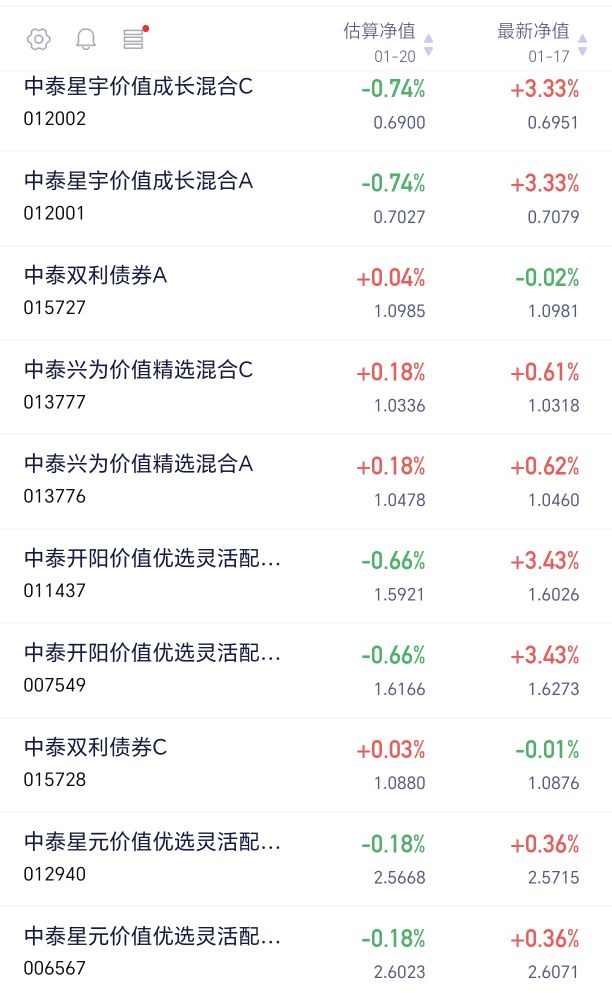 $中泰星宇价值成长混合A(OTCFUND|012001)$跌0.74%