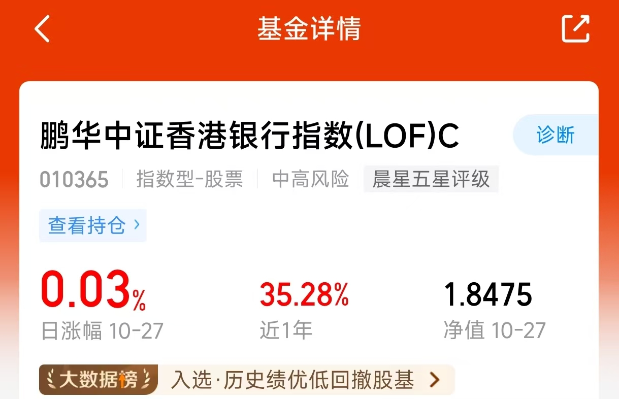 近一周市场并不平静,但$鹏华香港银行指数(LOF)C$(010365)依然保持了正收益。这说明在复杂环境下,那些有基本面支撑、估值合理的领域,反而可能展现出更强的抗压性。对于担心市场波动的投资者,不妨多看看这类资产。#科技热点摊开业啦#