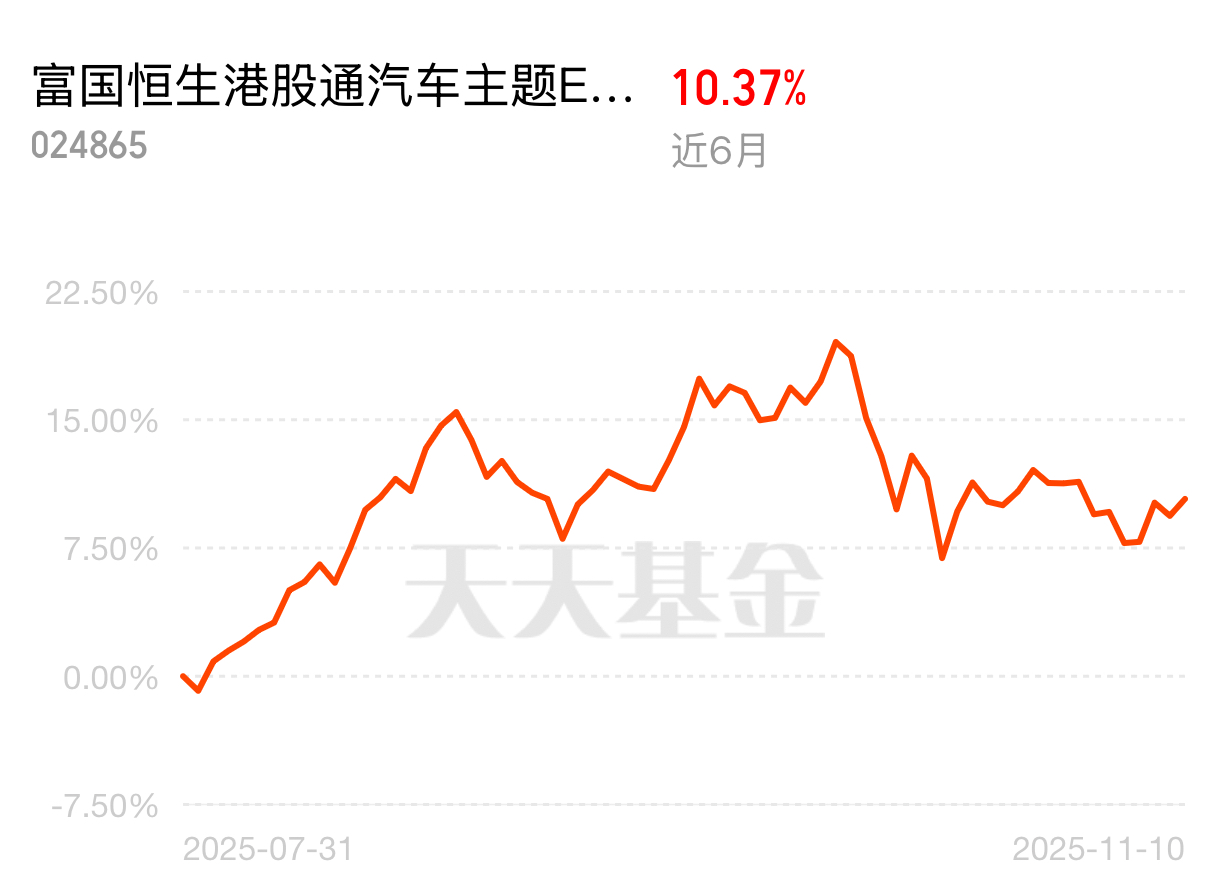 小鹏美股一动,港股汽车链就响应,这基金近6个月涨9%,0.46%跟踪误差几乎同步指数,拿它搭个车挺顺手。$富国恒生港股通汽车主题ETF发起式联接C$