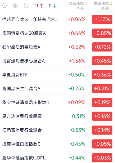消费行业基金估值盘后快报,收益全览,优劣自明