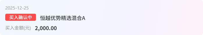 储能存储芯片概念,我加仓2000元$恒越优势精选混合A(OTCFUND|011815)$,这个恒越今年特别厉害,之前据说重仓CPO后面落袋为安了,然后又发掘了储能和存储芯片的机会,目前应该是重仓存储芯片和储能电池方向的。技术面上这两天有突破的意思,所以直接再布局一下等后续春节行情的到来,这两个方向也是比较看好且弹性很大的,基金自己会动态调仓的。