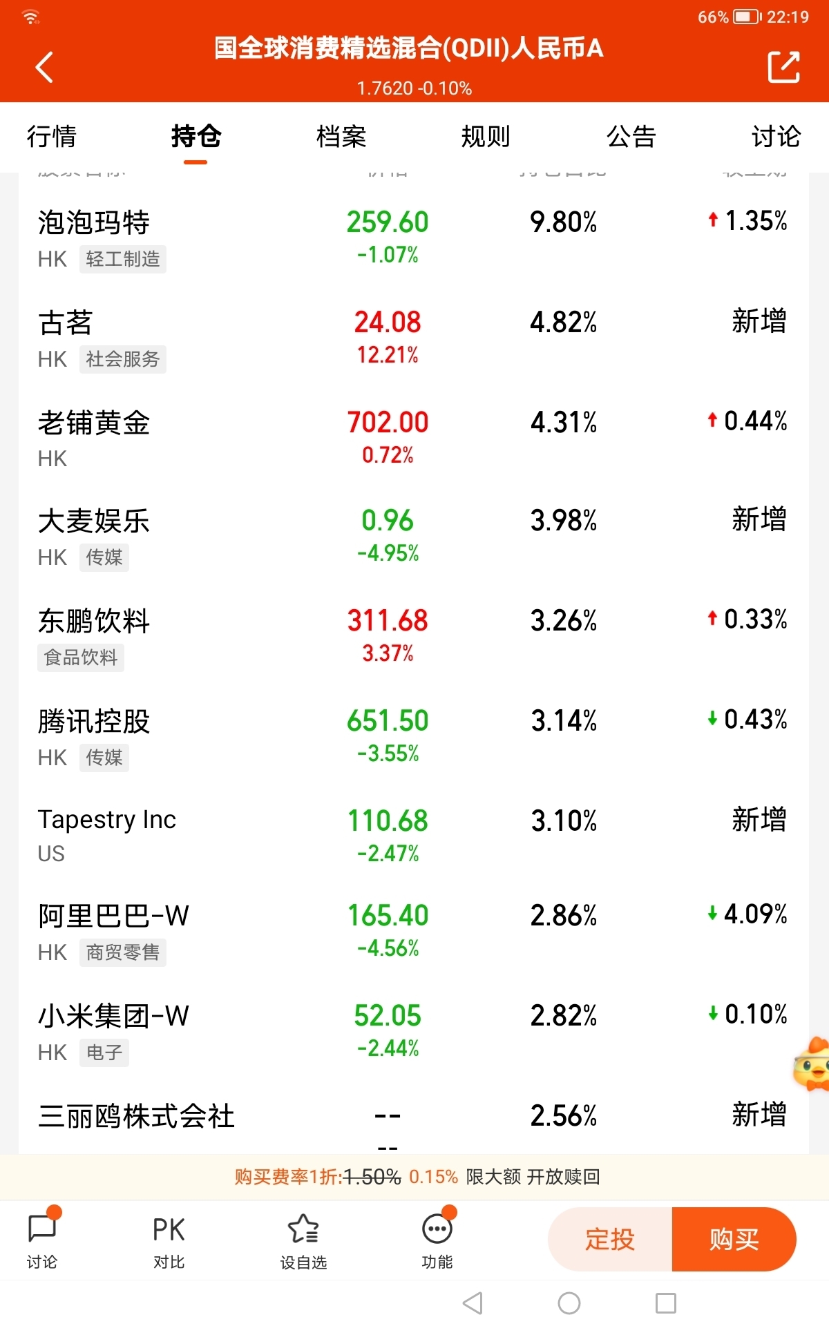 $富国全球消费精选混合(QDII)人民币A$今天公布的10/10的跌幅有点离谱,