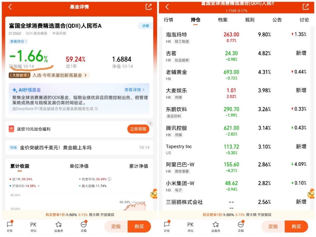 $富国全球消费精选混合(QDII)人民币A[012060]$