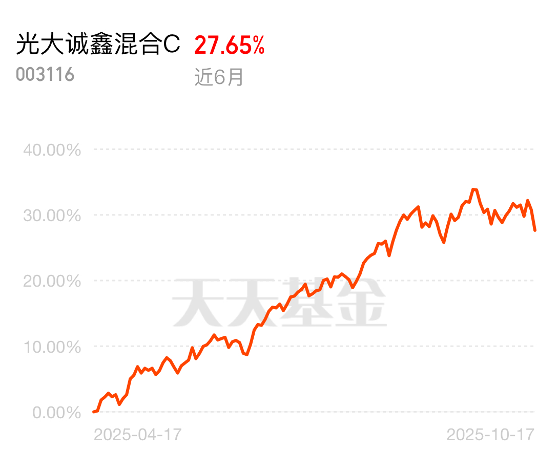 市场调了一阵后,不少基金到了能上车的位置,光大诚鑫混合C近六月27.65%、近一