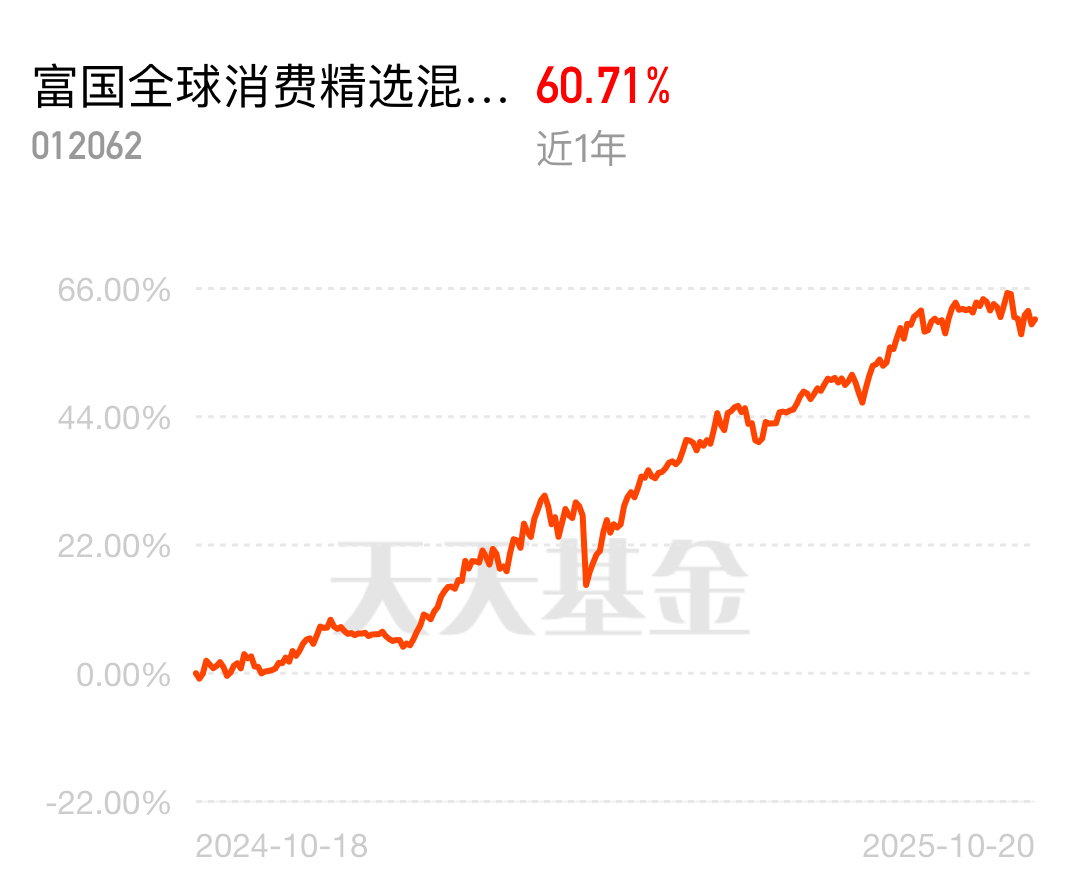 $富国全球消费精选混合(QDII)人民币C$ 布局全球消费,跟新兴消费紧密相关,近六个月+28.56%,近一年+60.71%,业绩表现不错赚钱能力强