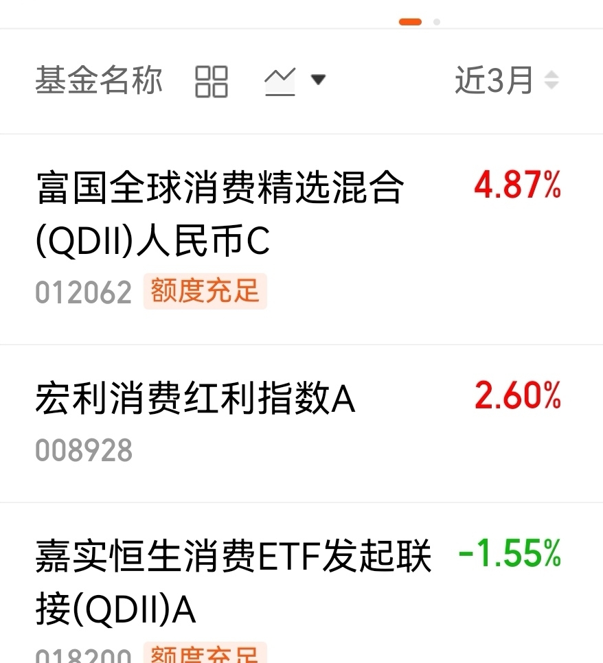 $富国全球消费精选混合(QDII)人民币C$ 这只基近三个月上涨4.87%,业绩确实不错,回调也是机会,四季度也是消费比较旺的季节。