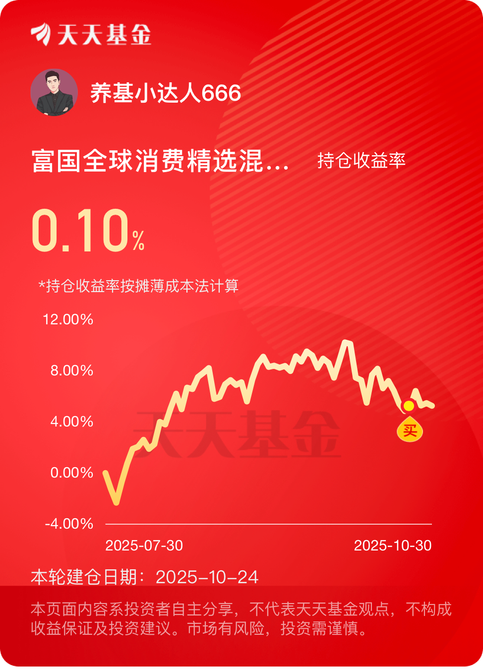 新消费赛道机会大于风险,今年上半年新消费板块表现亮眼,经过一段时间的调整,现在估值回落上涨空间打开,又正处于下半年消费旺季周期中,新消费赛道机会更大,$富国全球消费精选混合(QDII)人民币C$ 就是聚焦全球消费的混合基,成分股有阿里、腾讯、泡泡玛特、老铺黄金等新消费代表,可以同时把握多个市场的消费升级机会,也能规避单一市场的风险,近一年涨超55%,又严控回撤,真是能涨抗跌的好基