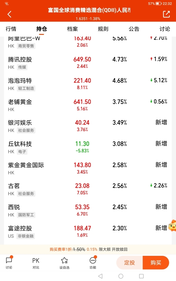 $富国全球消费精选混合(QDII)人民币C[012062]$ 今天涨少了,应涨3%以上。