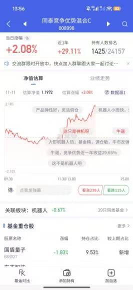 同泰竞争优势,人形机器人强,小体量,调仓快,牛市弹性好。$同泰竞争优势混合C$