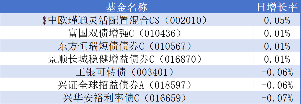 股指小幅上涨,债市延续弱势。$中欧瑾通灵活配置混合C$ (002010) 收了5个蛋,东方恒瑞短债债券C(010567)收了1个蛋,兴证全球招益债券A(018597)碎了6个蛋。中欧瑾通可以选择。#白银LOF溢价近70%临停,套利风险激增#