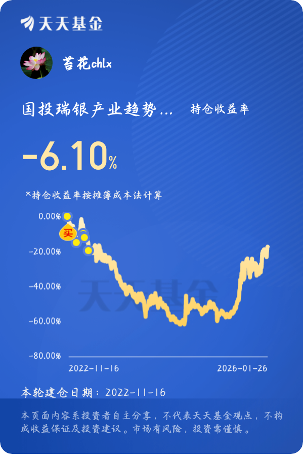 这基我买的时候看主要持仓是新能源和有色金属方面比较多才买的,结果基金经理不停调仓,感觉每次都错过热点,有色都已经不停新高了,我还在回本路上