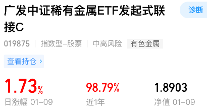 我加仓$广发中证稀有金属ETF发起式联接C(OTCFUND|019875)$1000元,跟踪的稀有金属指数这会看涨2.4%左右,又新高了!主线板块就是这样,你觉得它涨多了会调整,它却强者恒强不断新高,买入的资金太多,日内基金涨幅都可能会被稀释一些,主要热度太高啦,我也跟着市场主线继续布局。