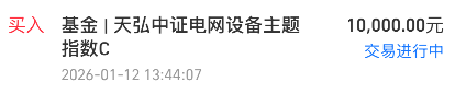 我加仓$天弘中证电网设备主题指数发起C(OTCFUND|025833)$10000元!跟踪的电网设备指数这会看涨1.2%左右,盘中又创出历史新高了,而且今天再收红就6连涨了,日K线呈多头排列趋势,我这块没什么仓位,今天直接大额建仓一笔,这个指数日常波动不大,可以穿越牛熊周期。