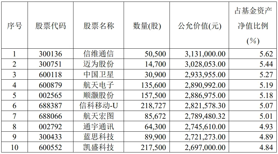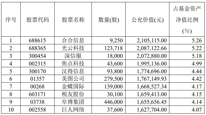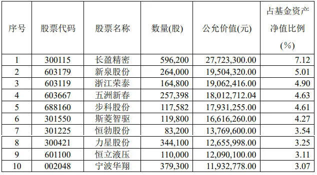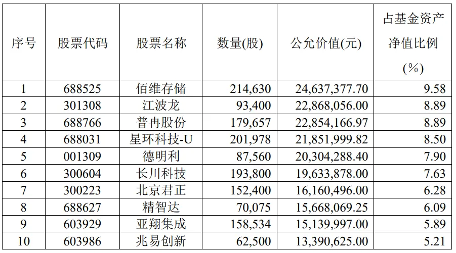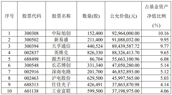 图表:广发新动力前十大重仓股