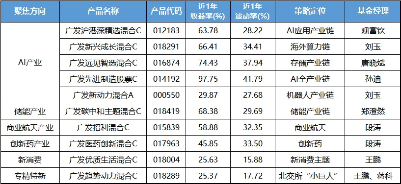 来源:Wind,截至2026.1.20。注:广发新动力混合C(025942)成立不足一年,故展示其A类份额的业绩。基金历史业绩不代表未来表现,市场有风险,投资须谨慎