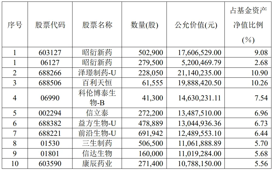 图表:广发医药创新前十大重仓股