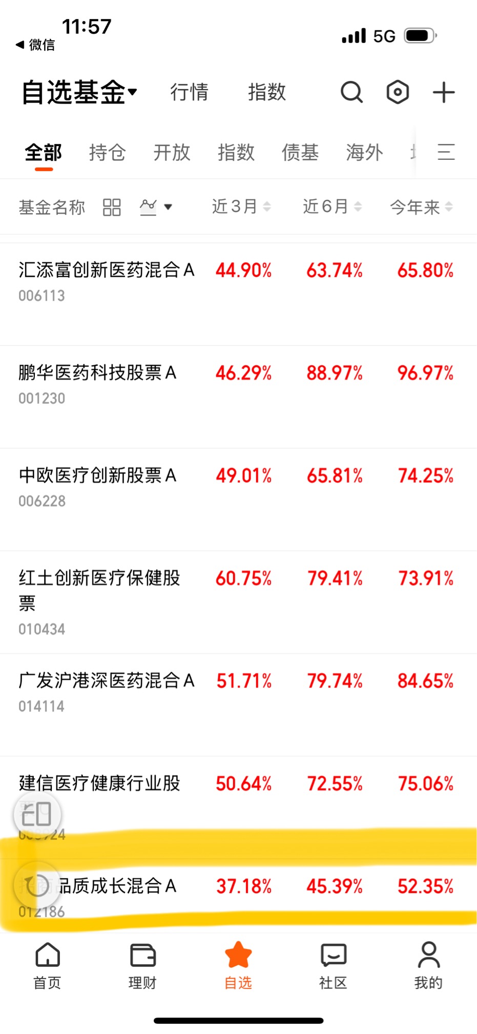 $招商品质成长混合A[012186]$ 看着这个基金,天天都想骂人,在我关注的近10个同类基金里面,永远是涨幅最慢,而抗跌能力最差的那个,看看今天的业绩就知道了......白白浪费了医药的大好机会......真的是到了八辈子霉,买了这样一个基金。