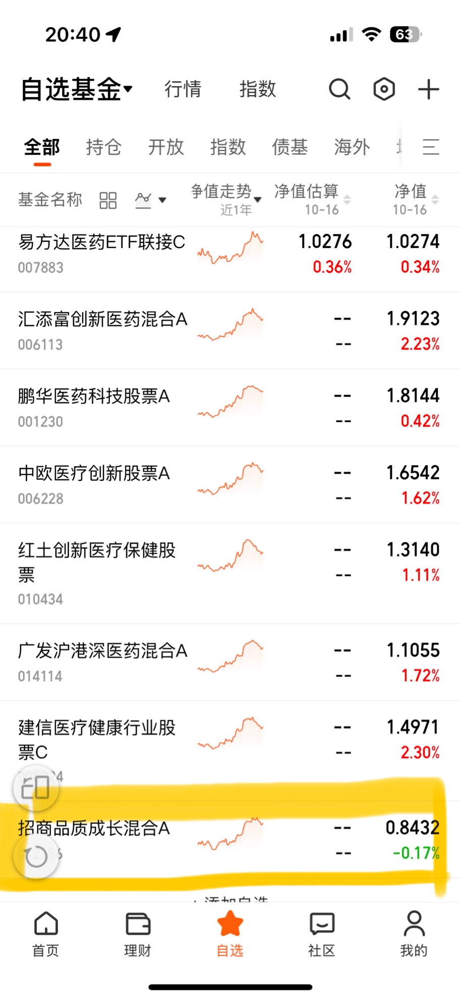 $招商品质成长混合A$看看今天其他基金都在涨,唯独招商是跌的,真想骂人