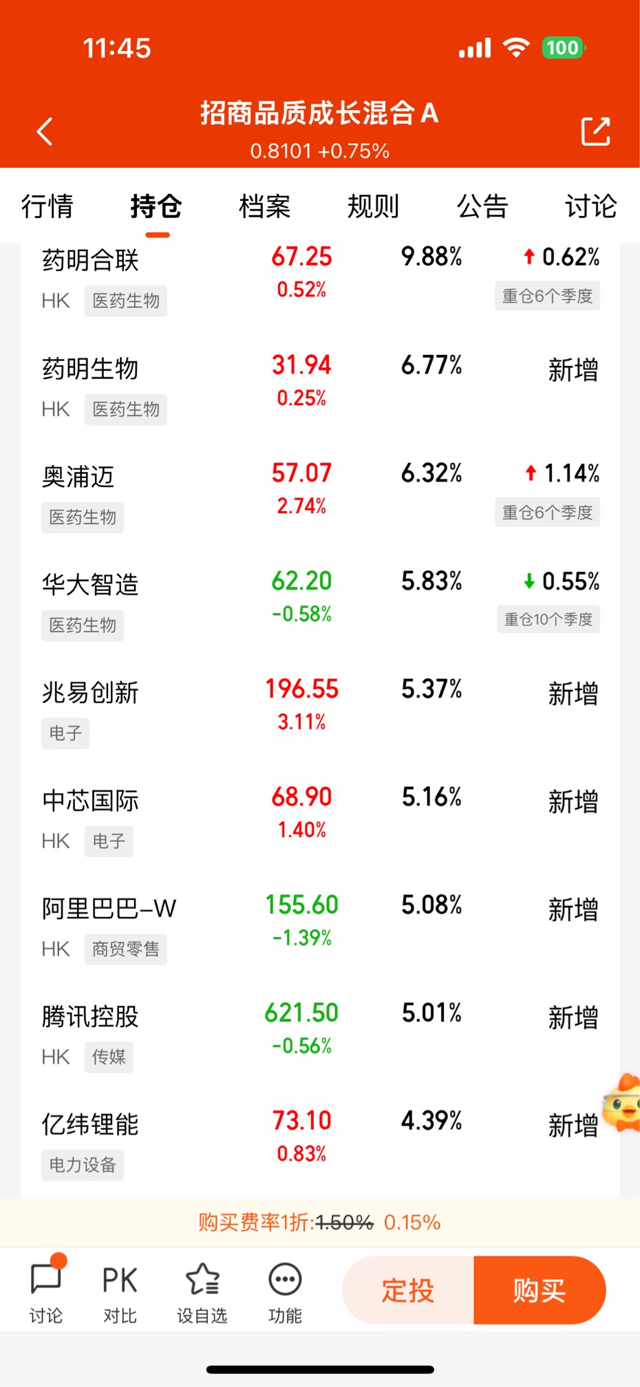 $招商品质成长混合A$今天大部分医药基金,如中欧,广发,建信几乎都是至少>2-3