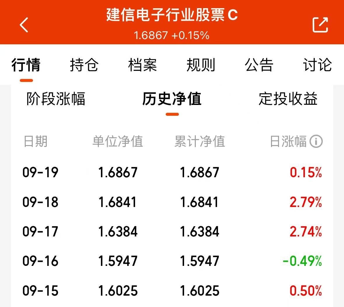 建信电子行业股票C连续三天咔咔吃肉近6%,今日再冲4.81%!消费电子+半导体核