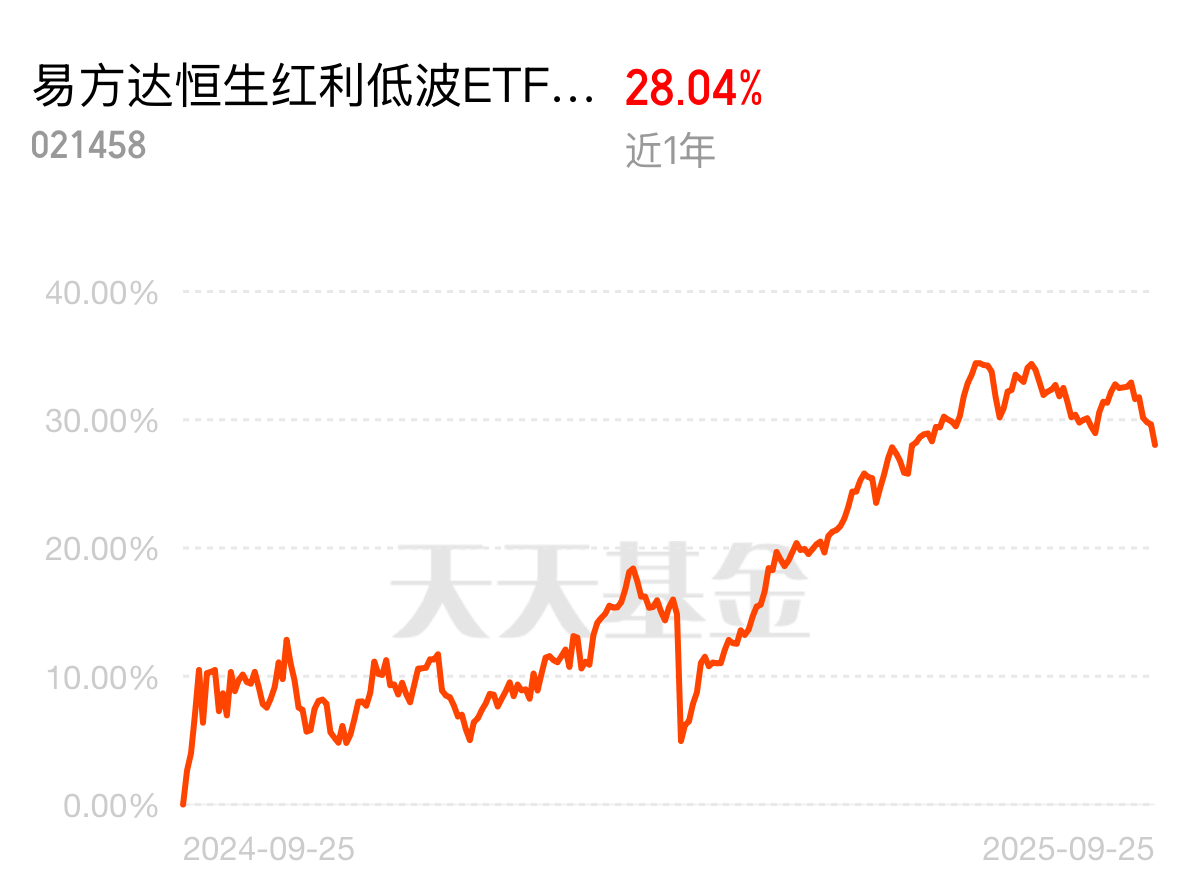 市场最近波动大,不少板块让人没安全感,恒生红利低波稳。易方达这只联接 C 近一年大涨 28.04%,当下位置正合适,想稳稳投的,继续上车!