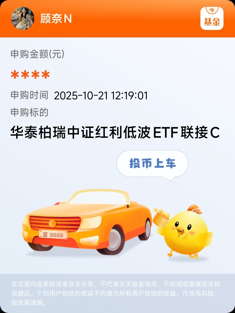 最近市场晃悠没劲儿,成交量还缩,想稳点过四季度,红利是好选择!华泰柏瑞中证红利低波 ETF 联接 C 近一月大涨 2.31%,每月都分红,连续 25 次了,稳当又有收益,值得买!