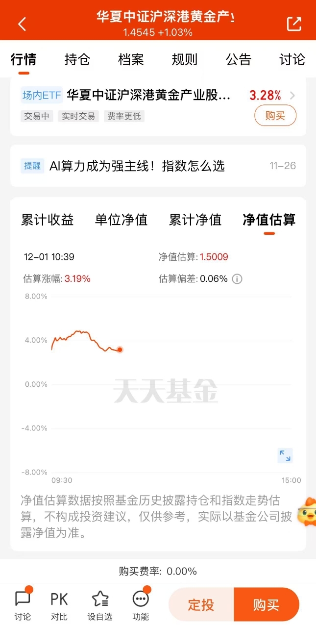 近一年收益达67%,当前上涨超3%,$华夏中证沪深港黄金产业股票ETF发起式联接