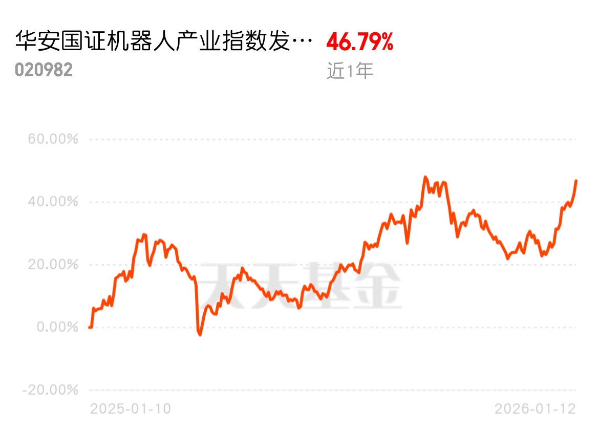 华安机器人产业C(020982)近一年赚46.79%,今天又涨2.88%,机器人产业风太猛,直接锁仓等继续飞$华安国证机器人产业指数发起式C$