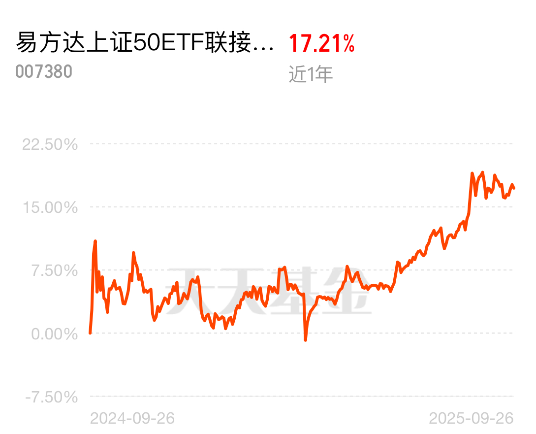 成长股最近表现确实亮眼,不过高估值的隐患得记着。想均衡持仓降风险,大盘价值可以看看,易方达上证50ETF联接C近1年17.21%,这收益靠谱,持仓别犹豫。