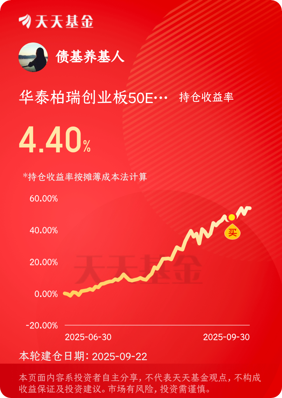 芯片、电池这些核心赛道齐拉升,带动创业板大涨。$华泰柏瑞创业板50ETF联接C$ #晒收益#