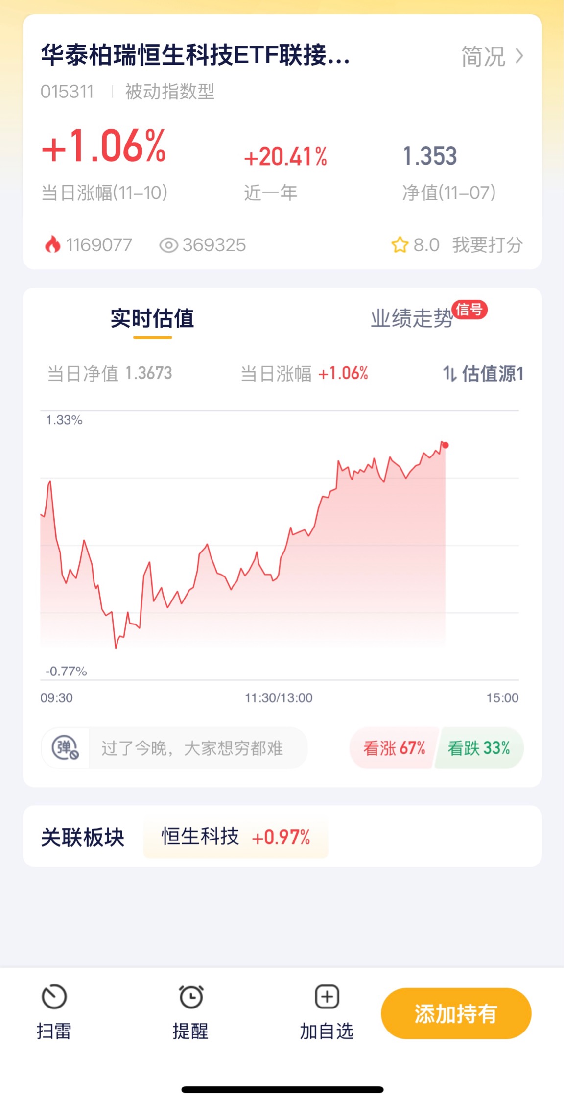 今天打开行情软件,看到恒生科技红了真挺开心的!经过前阵子的回调,现在终于开始回升,截至下午两点涨幅近1%,最高价都快冲到5900点了,市场活跃度明显提上来了。这背后离不开美国政府重新开门的利好,之前因为政府关门导致的流动性紧张问题要解决了,外资也有望重新回流港股,恒生科技作为港股的核心主线,自然会受益。对于咱们普通人来说,直接投港股门槛高还麻烦,不如看看华泰柏瑞,它专门跟踪恒生科技指数,相当于把港股里的主流科技股都打包好了,咱们小资金也能参与,而且它跟踪得挺准的,不用怕跑输指数,想布局港股科技的可以多留意。