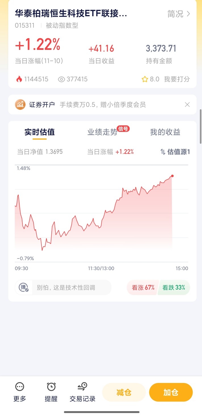 今天恒生科技的表现中规中矩,但外部环境迎来好消息——美国政府重新开门,港股有望结束波动企稳。恒生科技涵盖了互联网、AI等热门领域,现在行业基本面改善,资金也在慢慢流入。普通投资者想布局又不想折腾的话,华泰柏瑞的产品是个好选择,场外就能参与,不用研究复杂的个股,轻松搭上港股科技的快车。$华泰柏瑞恒生科技ETF联接(QDII)C$