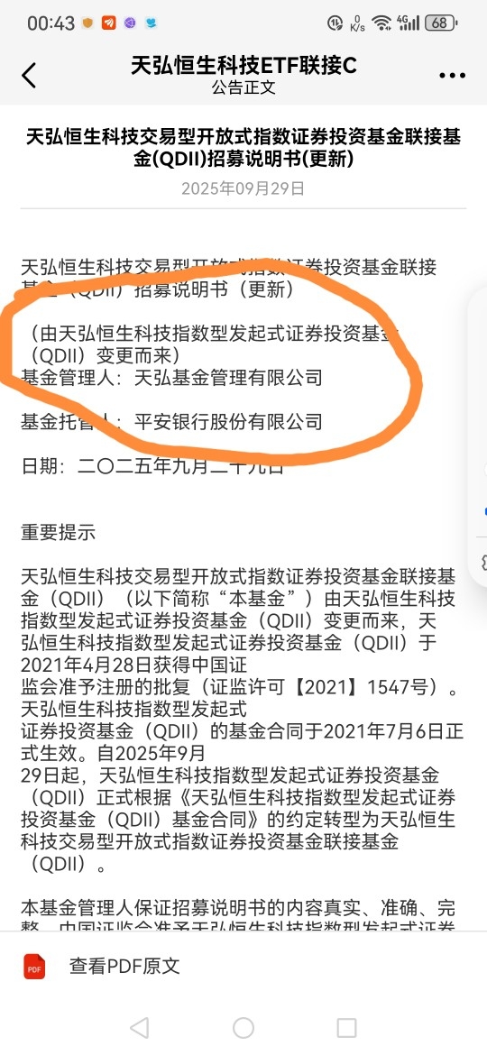 $天弘恒生科技ETF联接C$变更了,成了QDII