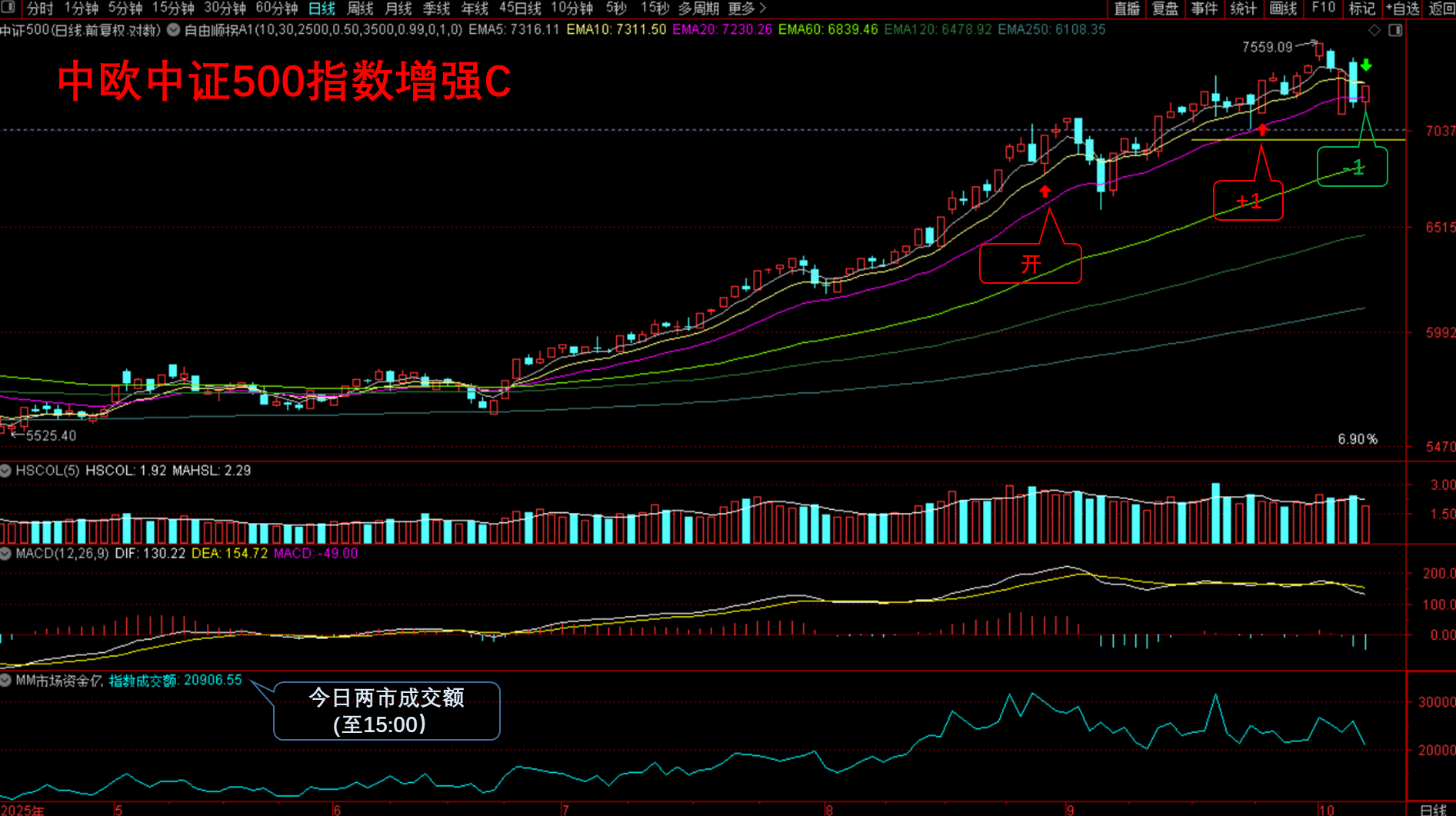 2. 中欧中证500指数增强C:在舱,今日-1。